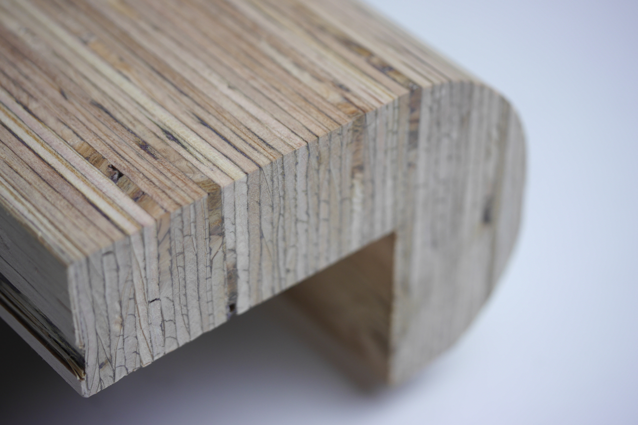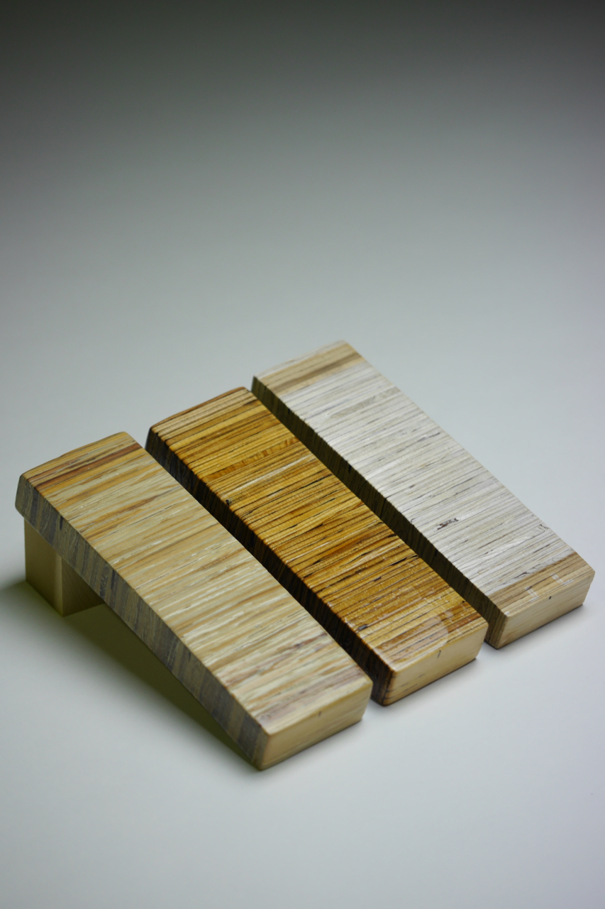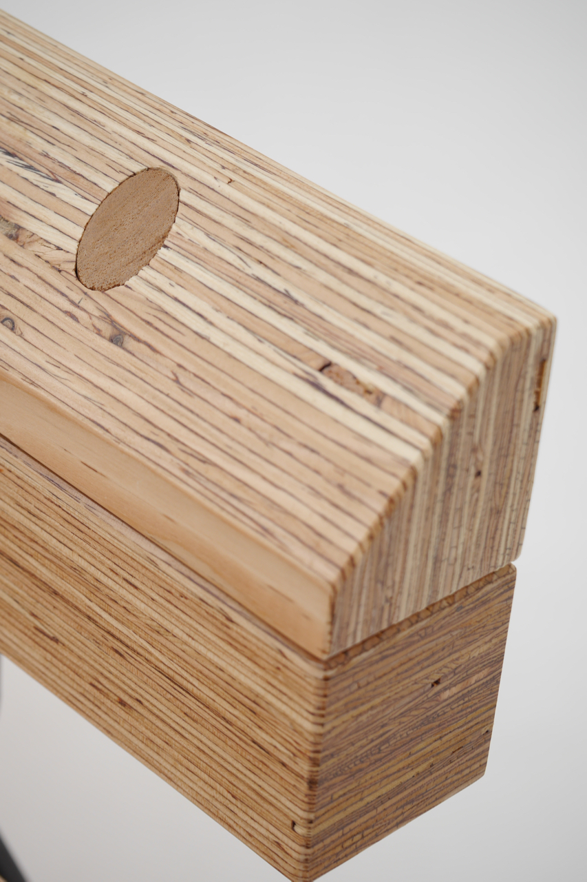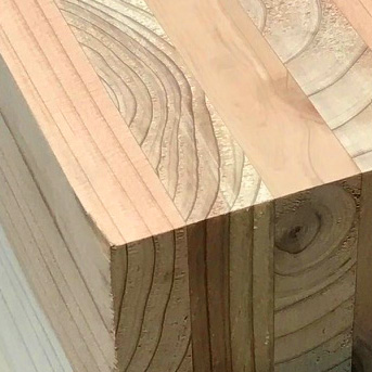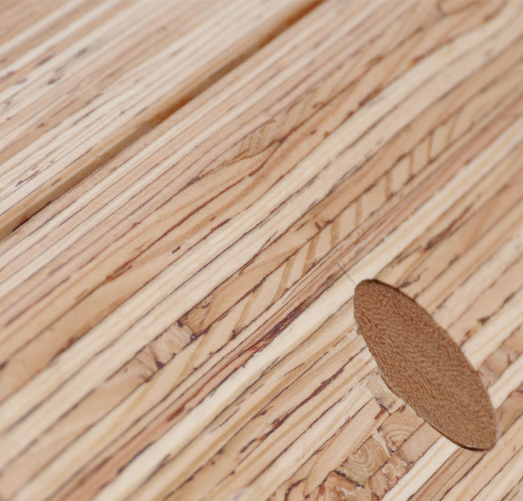 LVL(単板積層材)・Laminated Veneer Lumber・丸太をかつらむきのように薄く切削した単板を積層した材料・木目の面と積層面との2つの表情を持つ